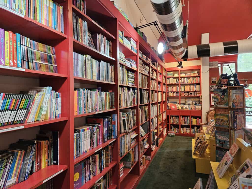 Like Impression Books, there were no staff picks on the shelf. I don’t always need a staff pick to wander over to a bookshelf, but given the sheer volume of books, they could have done a better job of showcasing various novels in each genre. Now, I personally love the look of Lemurias Bookstore, but one could argue that there was no visual space, and that all you could see was spines. The bookshelves are extra tall, so you can’t always seen the books on the top two shelves in certain sections. I don’t mind that in bookstores for the adult section, but I would say that the children’s section and middle school section could have used the opportunity to add visual space. While there was a rack that showed off some of the books, the shelves themselves needed a pop of book covers for younger readers to delve into.