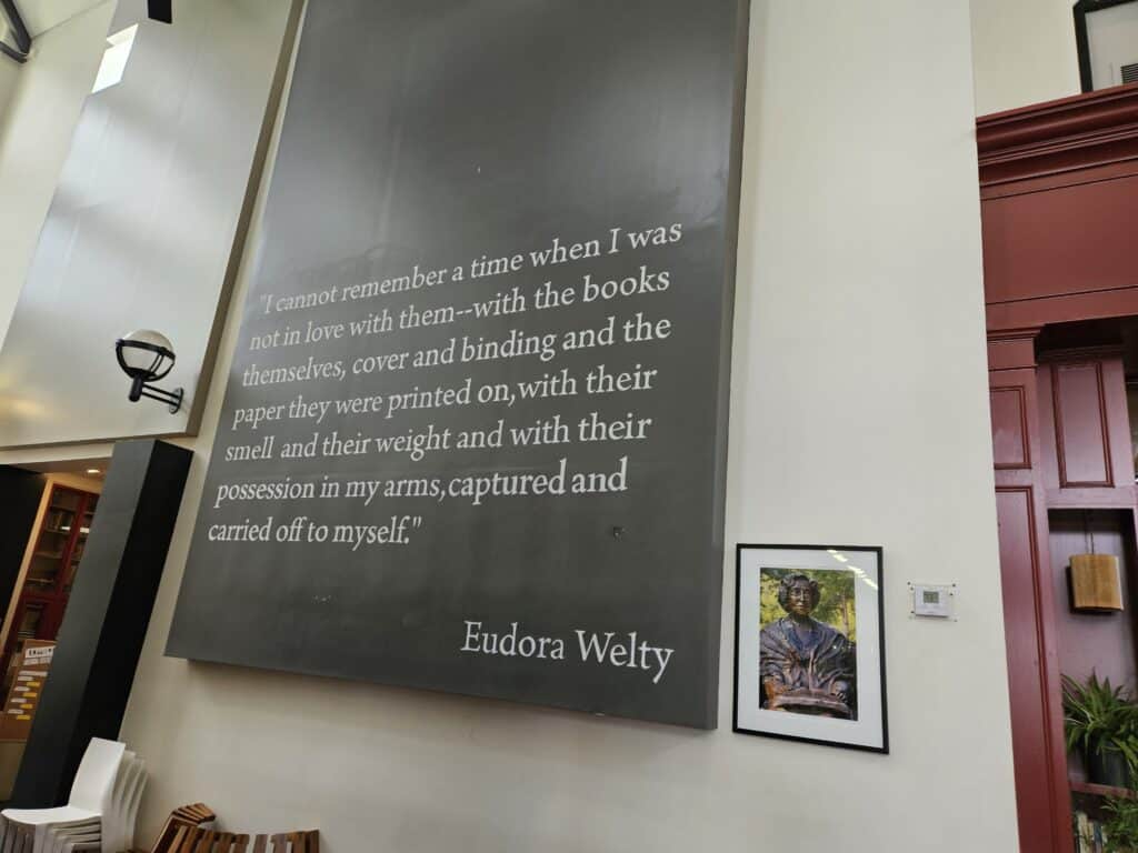 If I had a serious complaint about Lemuria Books it would be the staff. They were not very attentive. I really needed a book that was way too high for me to reach, and there was no one in sight. There also wasn’t a usable step stool to get to the novels. When I finally found two booksellers, they were engaged in a very personal conversation and the other book seller was ringing people up. There were probably four people working the store, and yet, they didn’t seem that friendly. They seemed more interested in signing people up for an event. When they realized that I was a tourist, they didn’t bother with me. I think if I had been a regular customer, I would have gotten fantastic service. However, they don’t seem attentive to anyone not in their first editions club, or a non local.